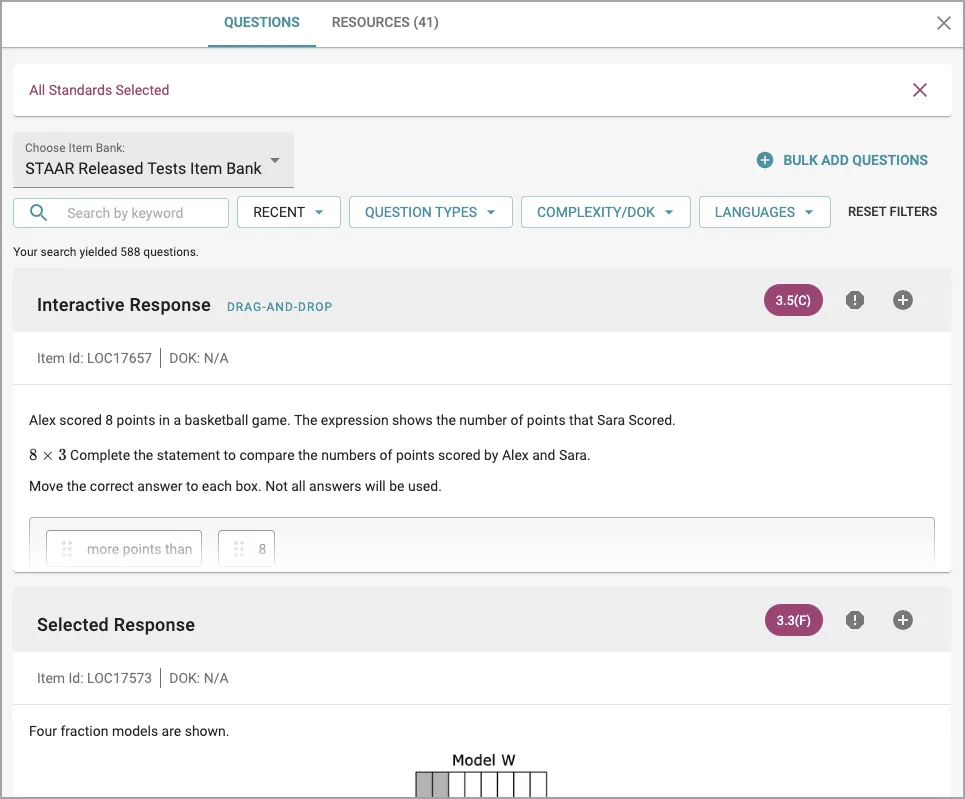 The item types were created to emulate the kinds of assessment items students see on state exams. Of course, it’s icing on the cake that these assessment items allow students to demonstrate their knowledge in a variety of ways.