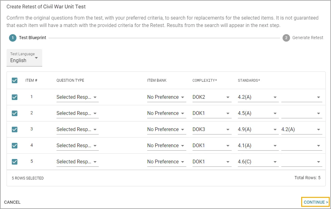 Once they’ve created the retest, they can vet each item and add replacements if there’s a gap in the exam.